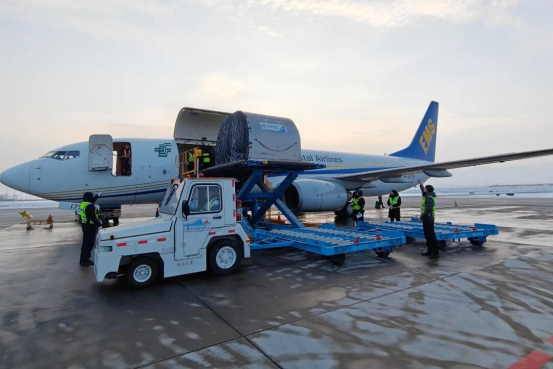 “2025年1月,师市交通运输局充分发挥石河子生产服务型物流枢纽、国家物流冷链基地双重优势,与中国邮政集团有限公司新疆维吾尔自治区分公司深化合作,依托中国邮政庞大的网点布局和邮政航空物流网络,成功开通该全货机航线。”师市交通运输局党组成员、副局长杨炎坤介绍,去年该航线安全运行40架次,完成货邮吞吐量超500吨。