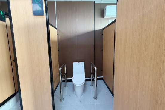本次改造室内面积250平方米,完成室内墙面板铺设450平方米。在功能布局上,男卫配备蹲便器6个、小便池4个及无障碍马桶1个;女卫设有蹲便器6个、无障碍马桶1个并增设便民置物台1套,充分满足不同群体使用需求。值得关注的是,项目聚焦公厕服务智能化、人性化升级,特别配置刷脸取纸机2台、公共饮水机1台及公厕空气检测智能系统,进一步提升市民使用的便捷性与健康安全保障水平。同时,公厕还配套电锅炉1套、空调6台、洗漱台1套,全面兼顾不同季节市民使用舒适度。