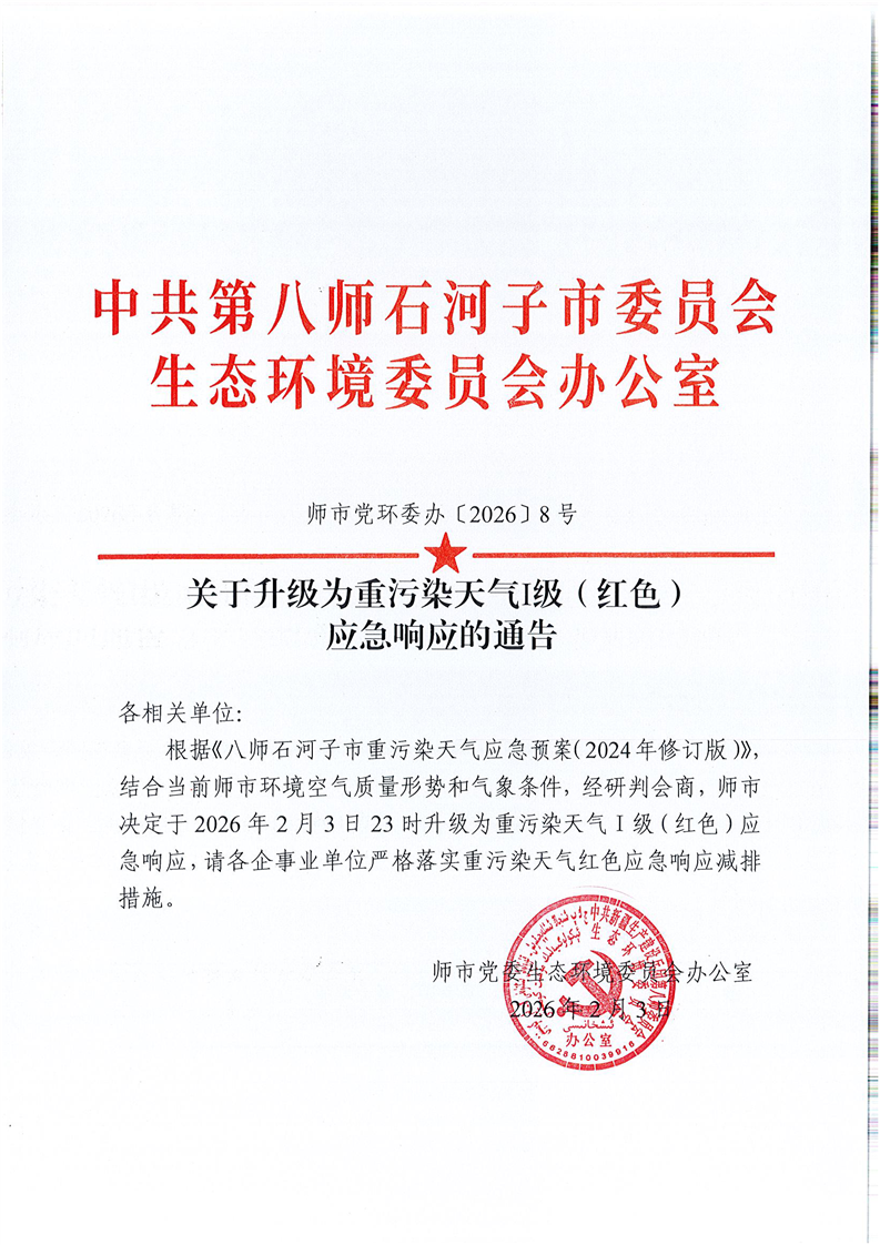 师市党环委办〔2026〕8号关于升级为重污染天气Ⅰ级(红色)应急响应的通告