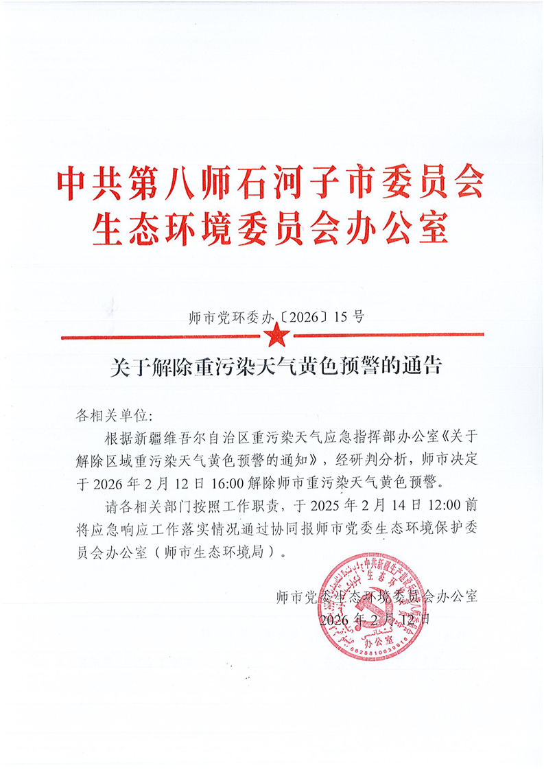 师市党环委办〔2026〕15号 关于解除重污染天气黄色预警的通告