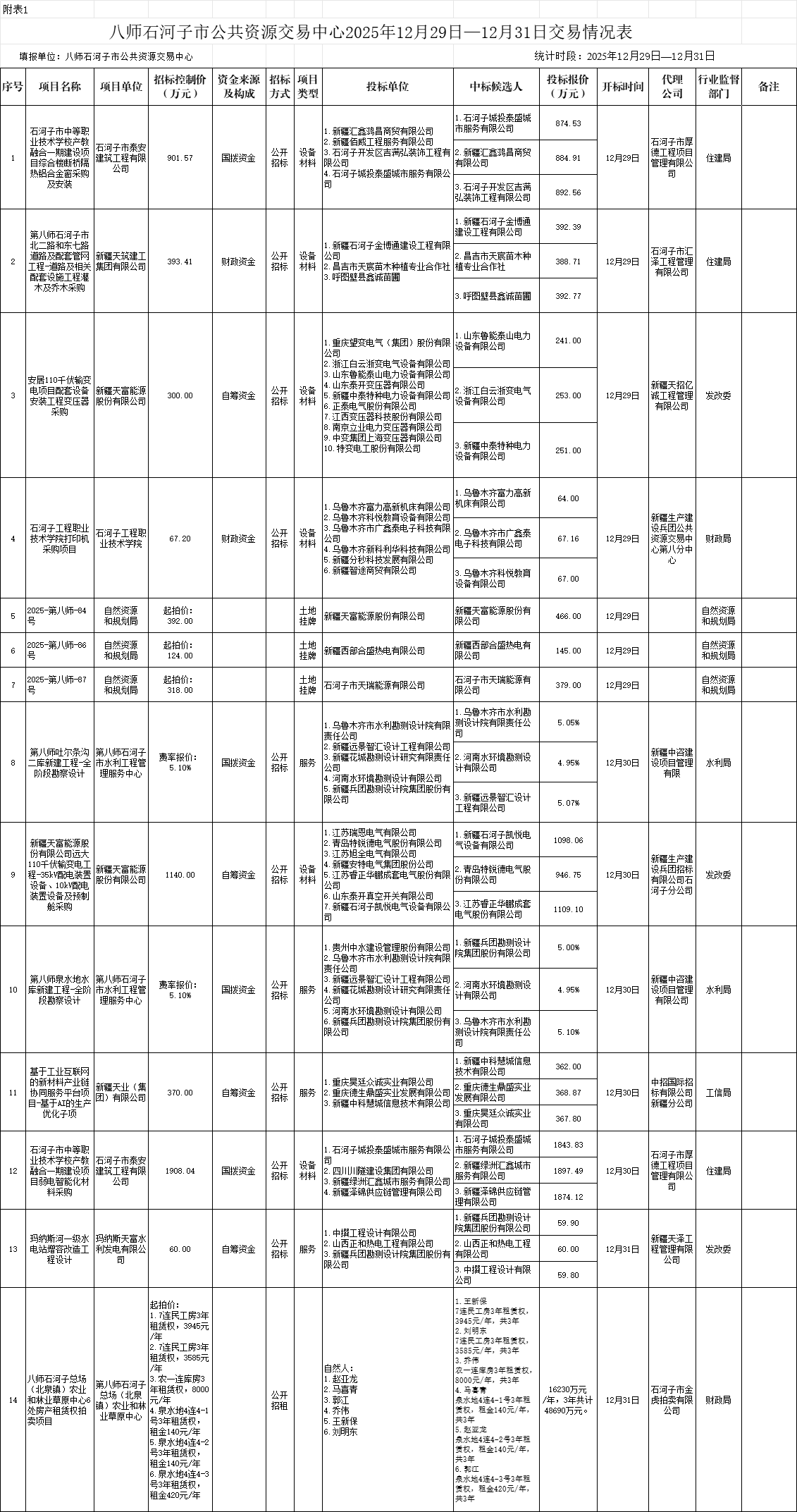 公共资源交易报表(2025年第52期)