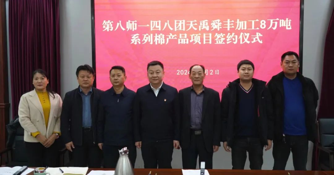经过多轮洽谈磋商和实地论证,2月2日,八师148团与新疆天禹舜丰棉业有限责任公司8万吨系列棉产品加工项目成功签约。这是该团今年签订的第一个招商大单。
