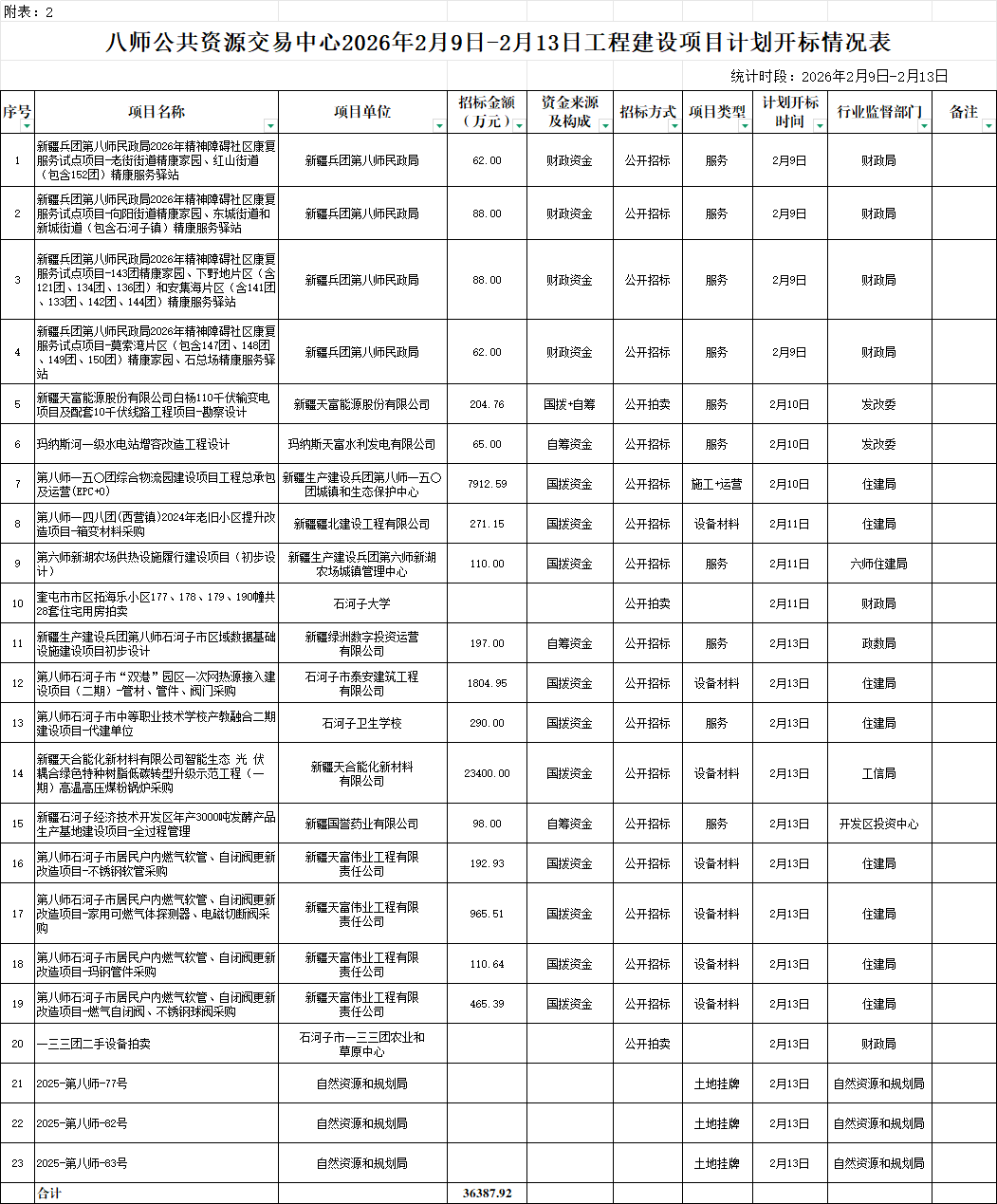2.八师公共资源交易中心2026年2月9日-2月13日工程建设项目计划开标情况