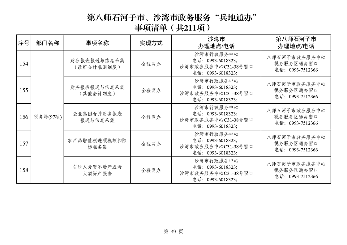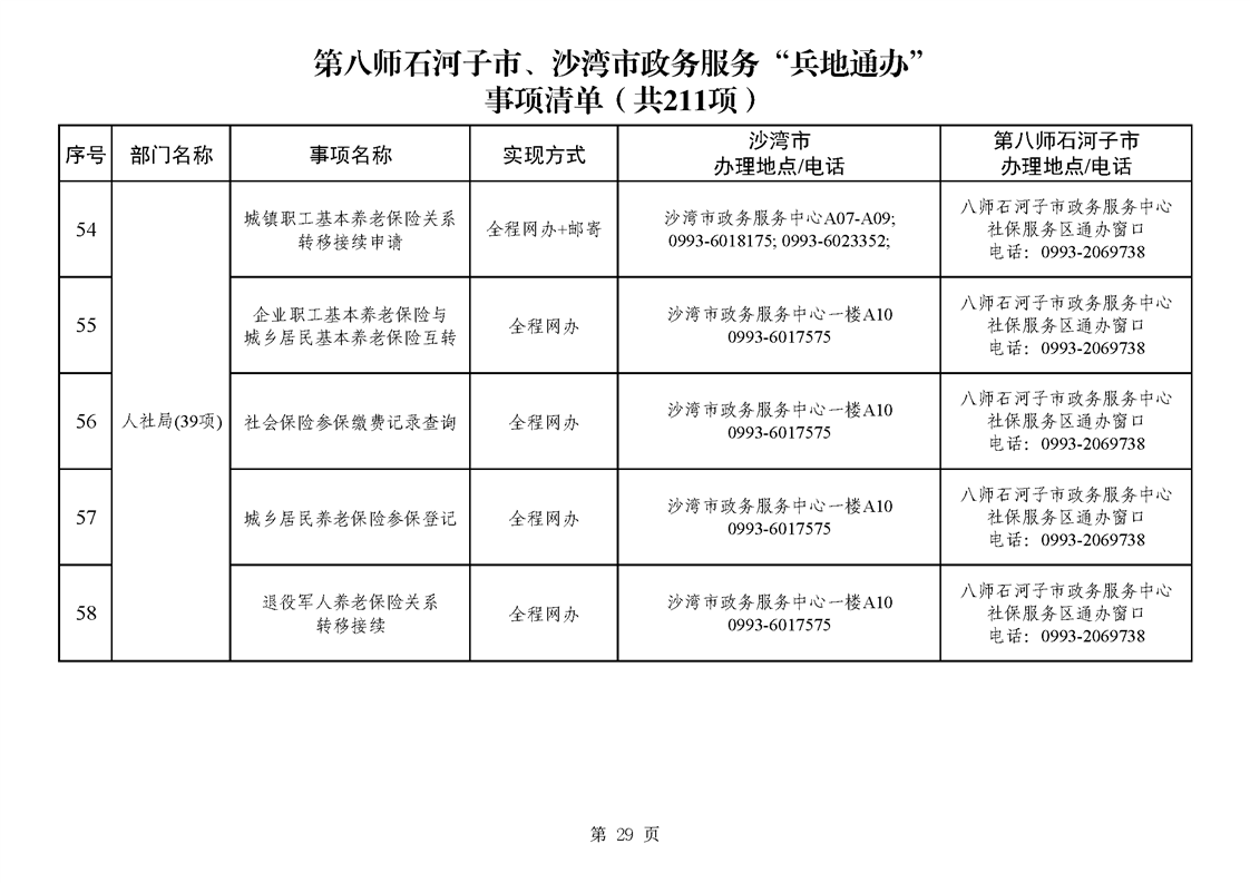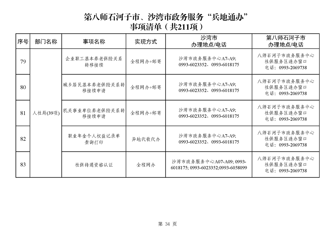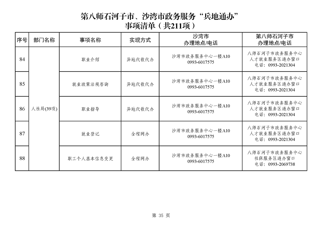 第八师石河子市、沙湾市政务服务“兵地通办”事项清单(211项)