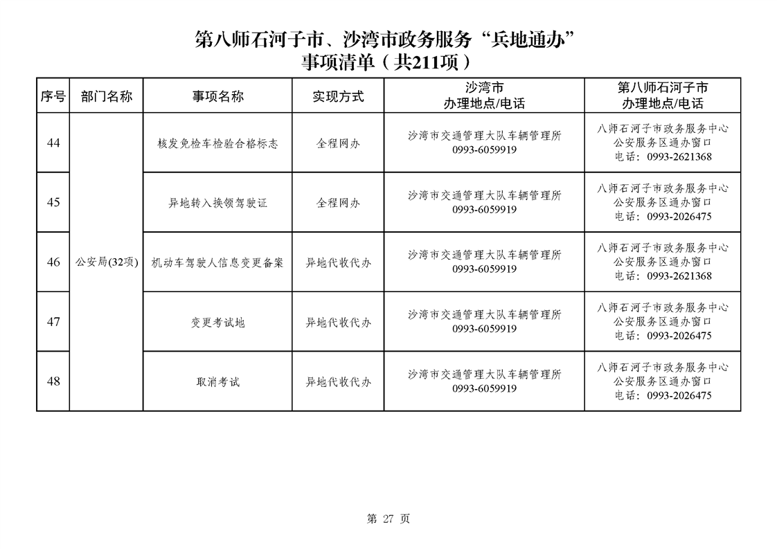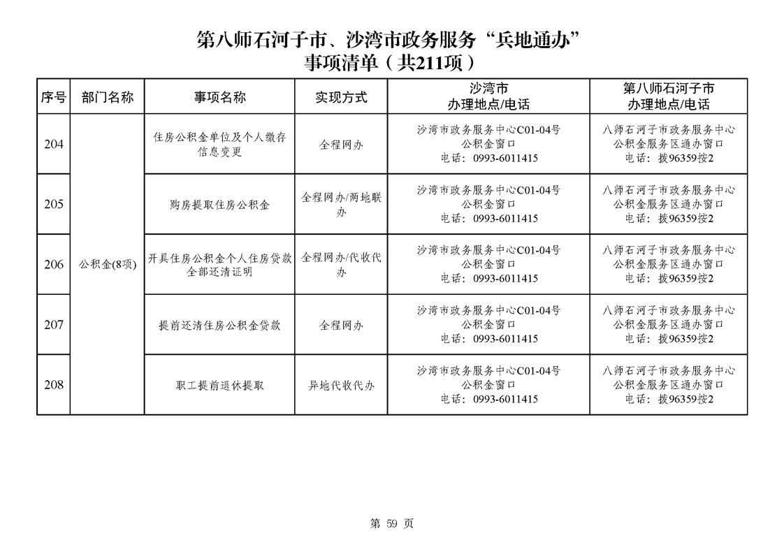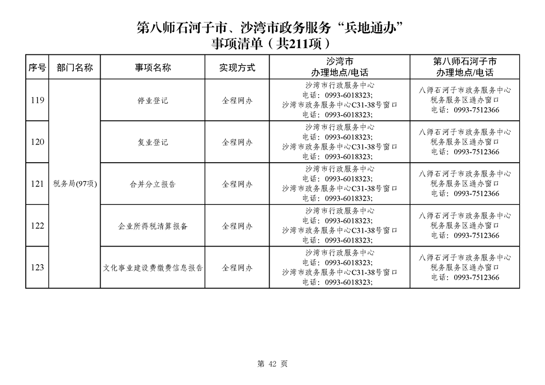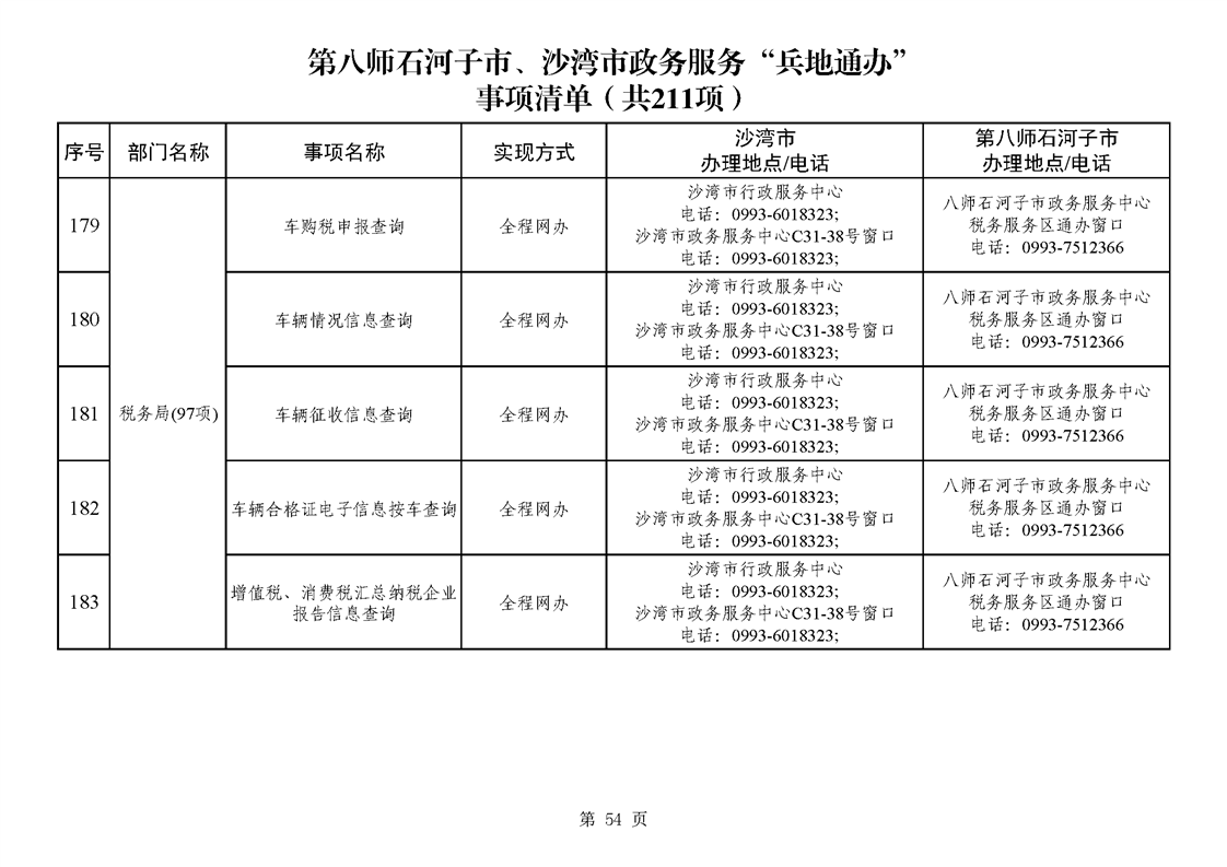 第八师石河子市、沙湾市政务服务“兵地通办”事项清单(211项)